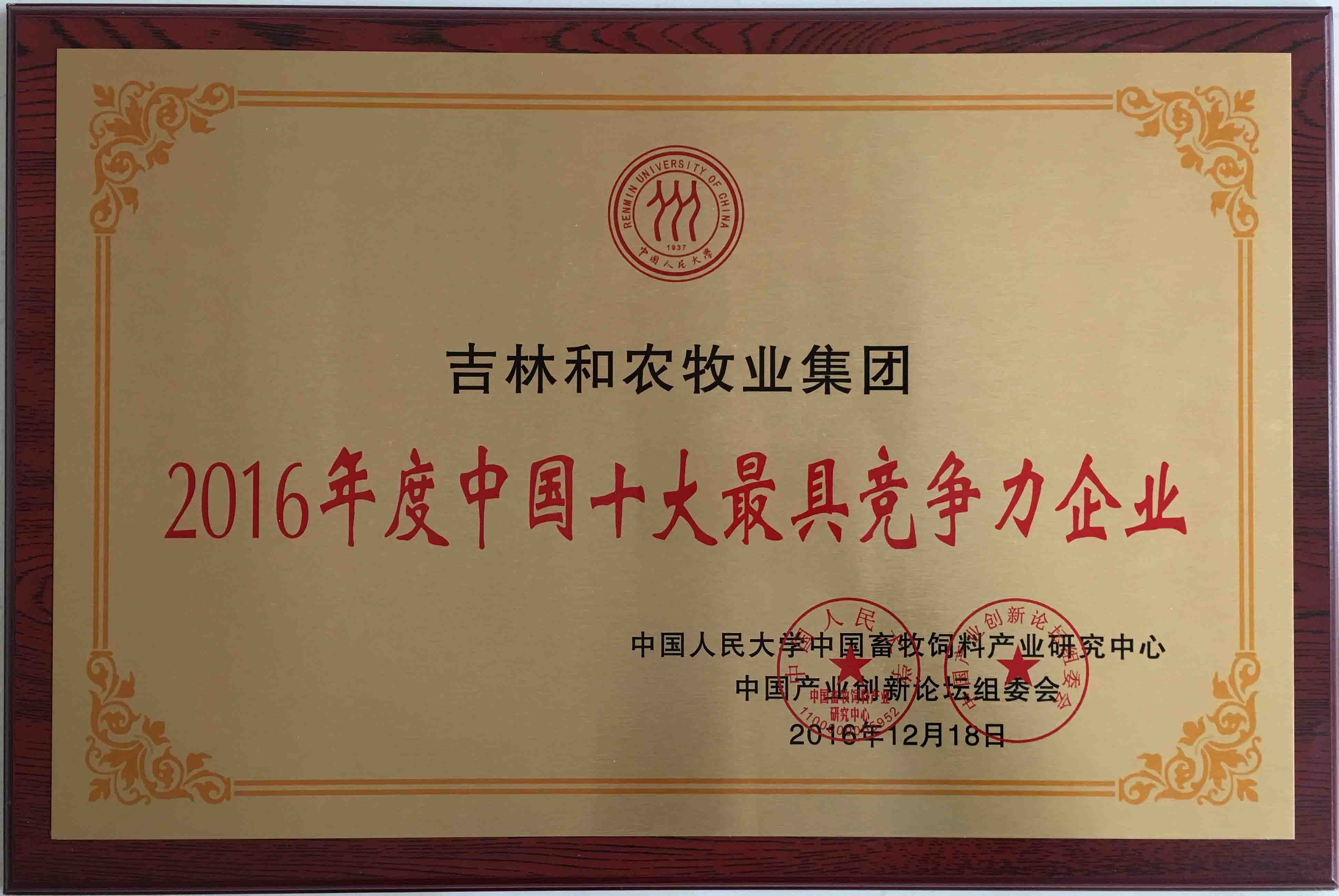 和農(nóng)牧業(yè)集團(tuán)榮獲2016年度中國十大最具競(jìng)爭(zhēng)力企業(yè)頒獎(jiǎng)現(xiàn)場(chǎng),頒獎(jiǎng)嘉賓為中國三農(nóng)專家溫鐵軍先生