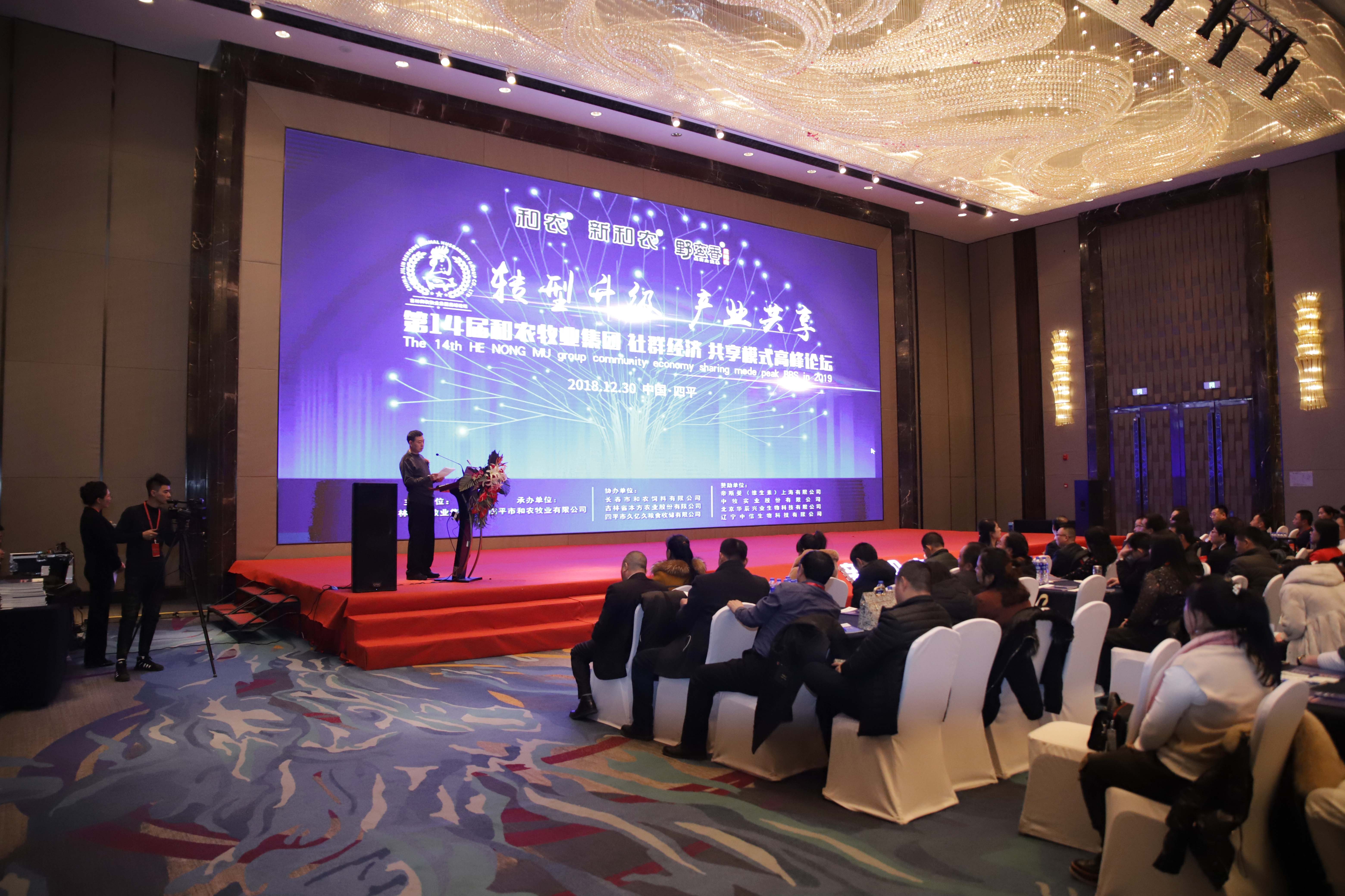 由吉林和農牧業(yè)集團主辦,四平和農牧業(yè)承辦,長春和農、本方農業(yè)、久億久糧食收儲協(xié)辦,帝斯曼、中牧實業(yè)、北京華辰興業(yè)生物、遼寧中信生物贊助支持的 "轉型升級 產業(yè)共享" —— 第十四屆和農牧業(yè)集團 社群經濟 共享模式 高峰論壇在四平萬達嘉華酒店隆重舉行。來自東北三省300余位企業(yè)優(yōu)秀代表參加了主題為“轉型升級 產業(yè)共享 社群經濟 共享模式”的高峰論壇。